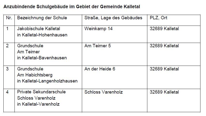 Im Jahr 2019 hat sich die Gemeinde Kalletal auf den Sonderaufruf NGA-Breitbandausbau „Schulen und Krankenhäuser“ des Bundes und des Landes NRW beworben. Die Bewerbung wurde von der ateneKOM in Vertretung des Bundesministeriums für Verkehr und digitale Infrastruktur am 03. Juni 2019 positiv beschieden. Weiterer Informationen zur Bundesförderung können auf der folgenden Internetseite abgerufen werden: http://www.atenekom.eu/bfp/.