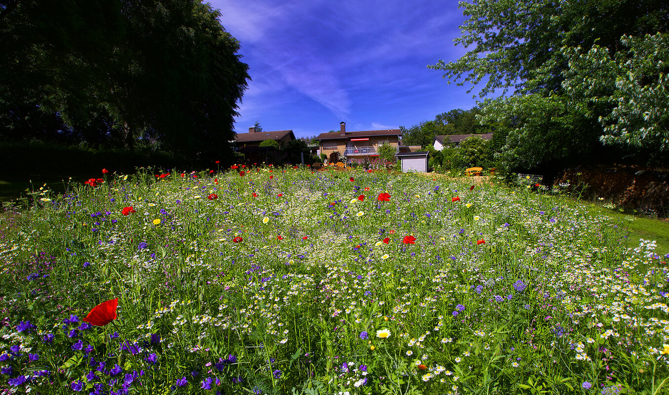 Frau Karola Korzen überzeugte mit einem bunt blühenden Blumenmeer mit strukturreicher Artenvielfalt und großer Insektenfreundlichkeit.