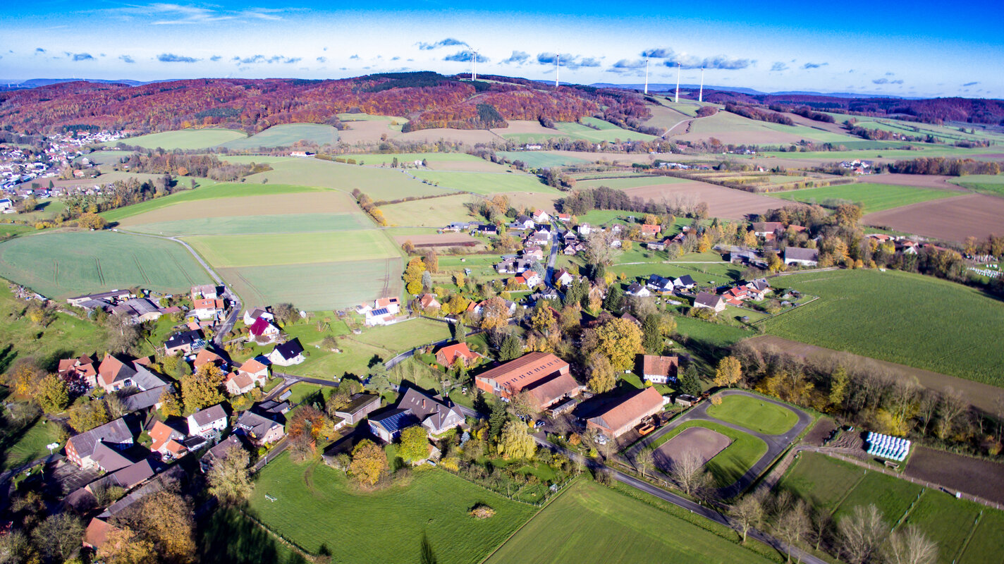 Kuh- und Pferdeweiden, die gesäumt werden von (blühenden) Hecken und Obstbäumen. Durch ein Wäldchen kann die Wandergruppe dann vom höchsten Punkt der ca. 5 km langen Tour den weiten Blick über die freie Fläche genießen: hinab nach Hohenhausen, hoch zu den Rotoren der Windräder, zur nahen Windmühle in Bavenhausen und in die Ferne, wo - bei gutem Wetter - sogar die Porta