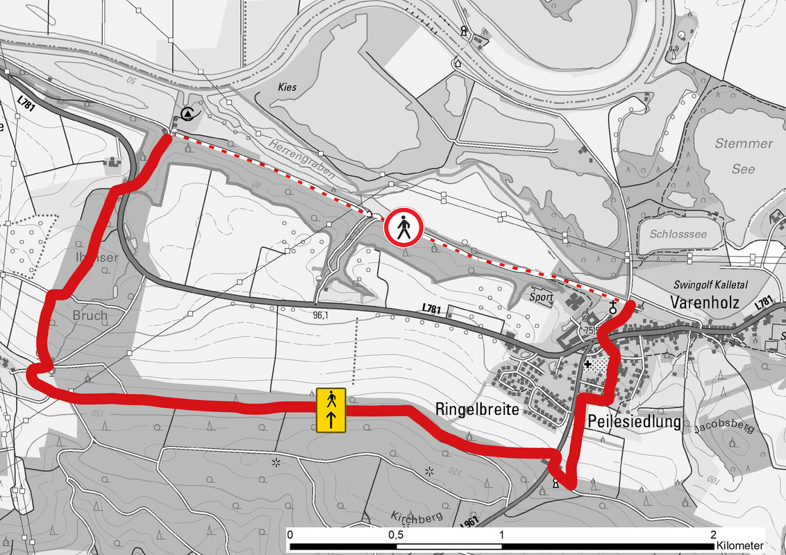Wanderer können eine Umleitung über den Dingelstedtpfad südlich des gesperrten Abschnitts benutzen. „Der Umweg beläuft sich auf rund zwei Kilometer, wenn Wanderer aus Varenholz kommend den Weg der Blicke gehen möchten. Wer nicht nach Varenholz