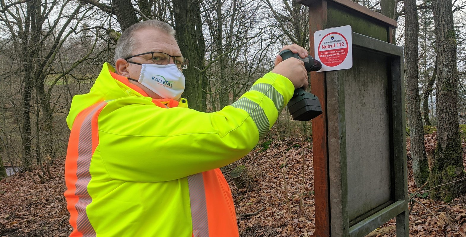 Im Zuge der Neukonzeption des Wanderwegenetzes war es jetzt erforderlich, dass Rettungspunktesystem um vier weitere Punkte anzupassen, die durch Michael Pohlmann, Fachkraft für Arbeitssicherheit der Gemeinde Kalletal und Initiator des flächendeckenden Rettungspunkteprojekts, angebracht wurden.