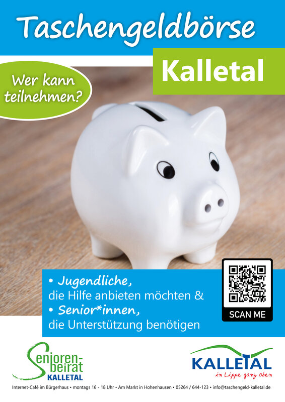 Zwei auf einen Streich - die neue Taschengeldbörse für Kalletal verbindet Generationen: Jugendliche haben die Möglichkeit, durch leichte Hilfstätigkeiten ihr Taschengeld aufzubessern. Ältere Menschen erhalten Hilfe, beispielsweise im Haushalt, Garten oder bei der Unterstützung von digitalen Anwendungen.