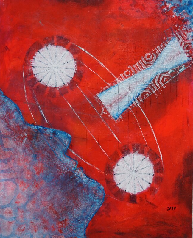 „Meine Werke entstehen mit viel Gefühl, aus meinem inneren Sein. Durch sie wird sichtbar, was sich in mir abspielt. Ob kunterbunt und frei oder auch mal schwarz und etwas verkopft. Die Bilder lassen durch ihre Abstraktion viel Spielraum für Interpretation“, so Katharina Wiesner.